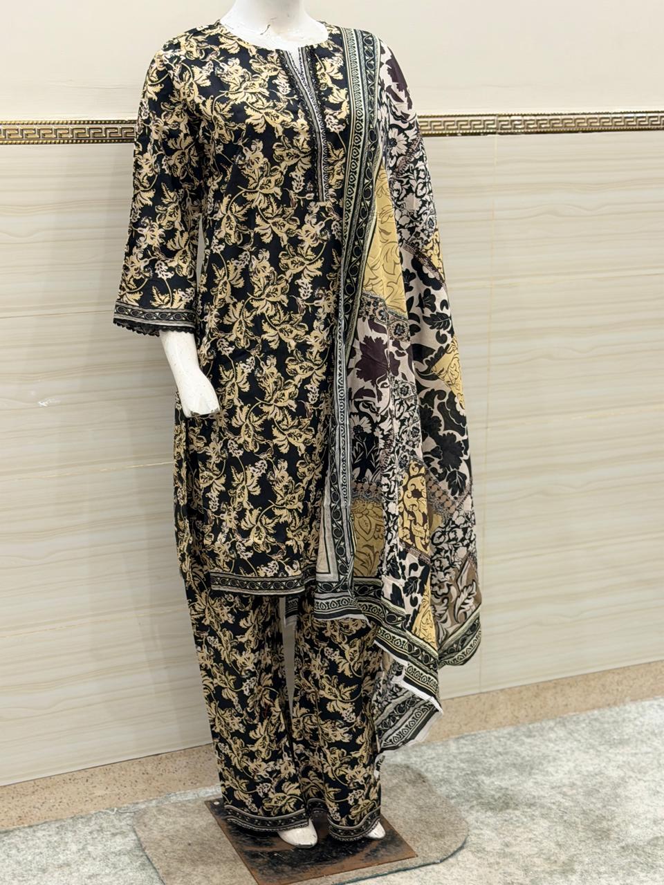 • Ornate Multi-Pattern Dupatta: A stunning contrast dupatta featuring sections of damask, floral, and geometric art to elevate the entire look.